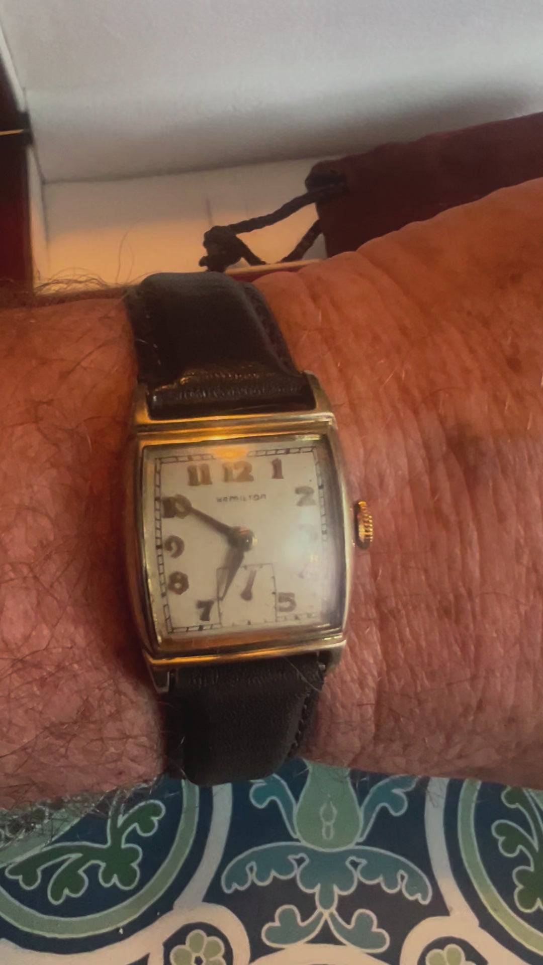 1940’s Hamilton Forbes 14K Gold Filled Tank Watch- 747 Runs Great B6