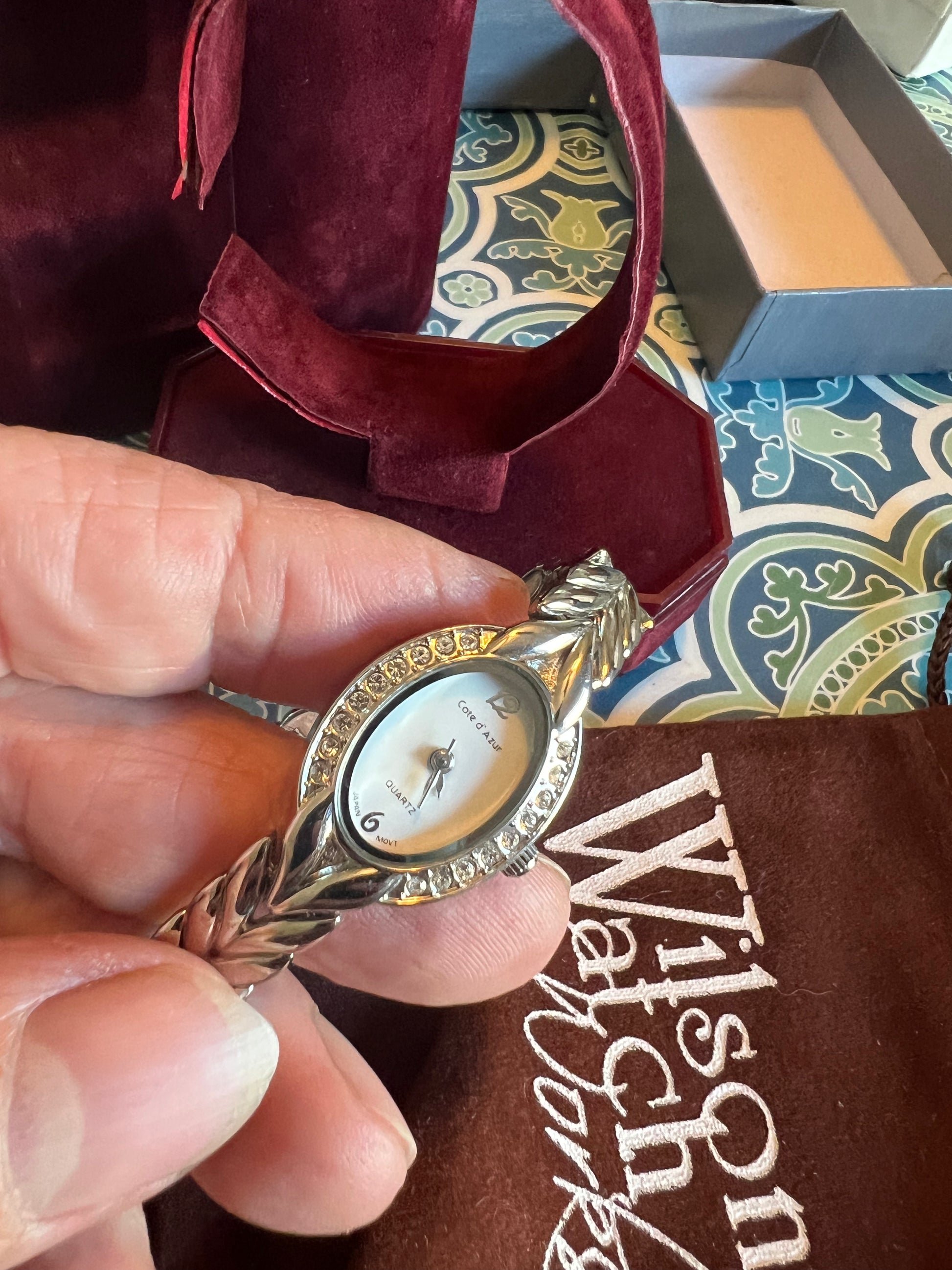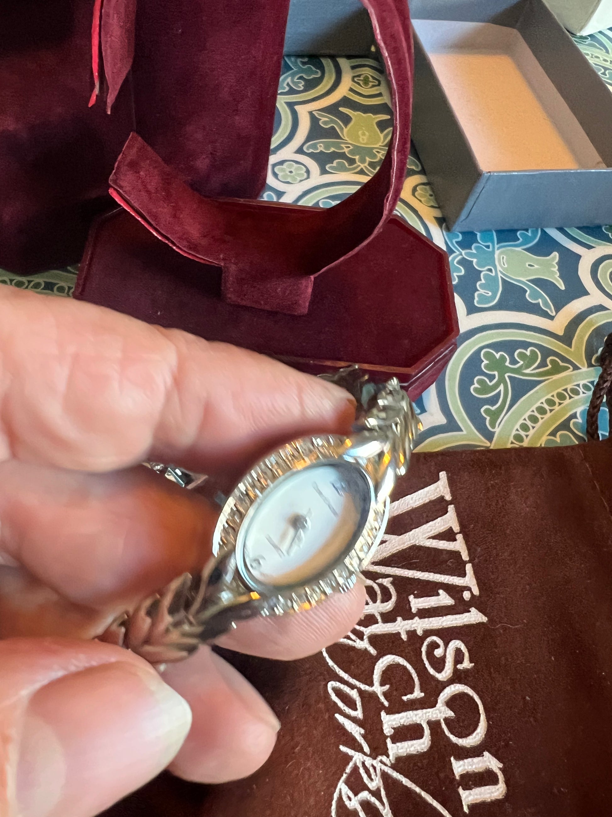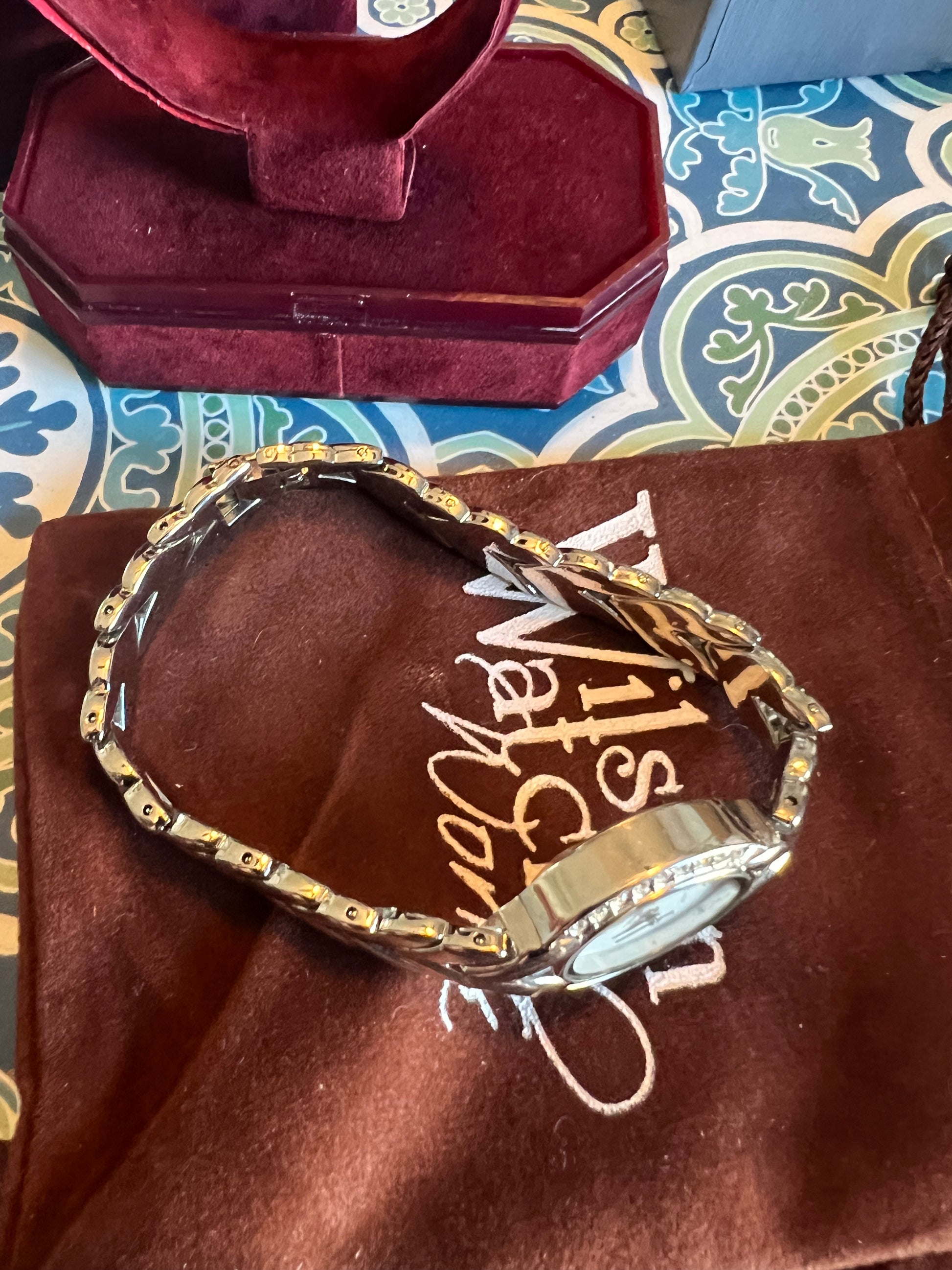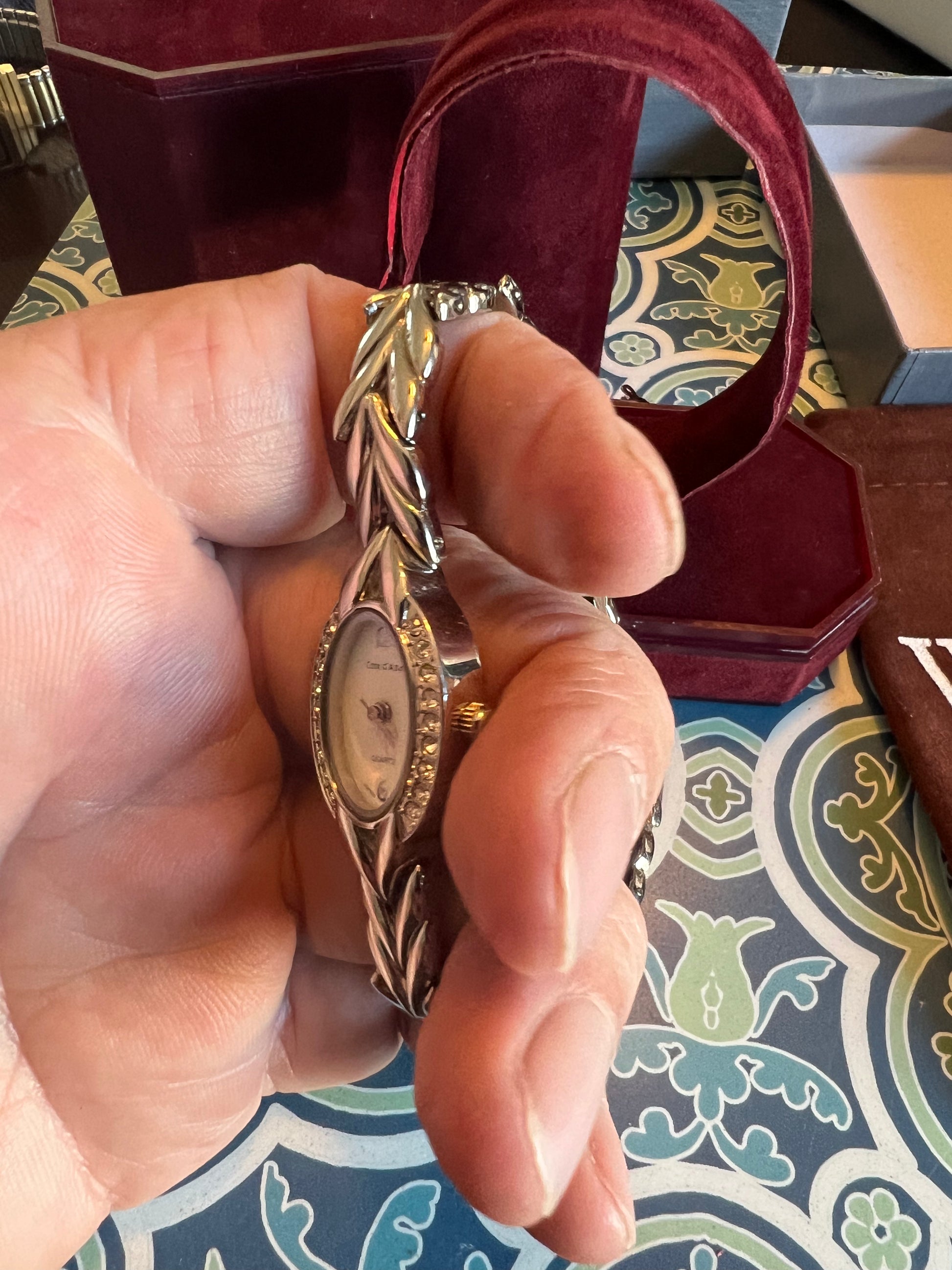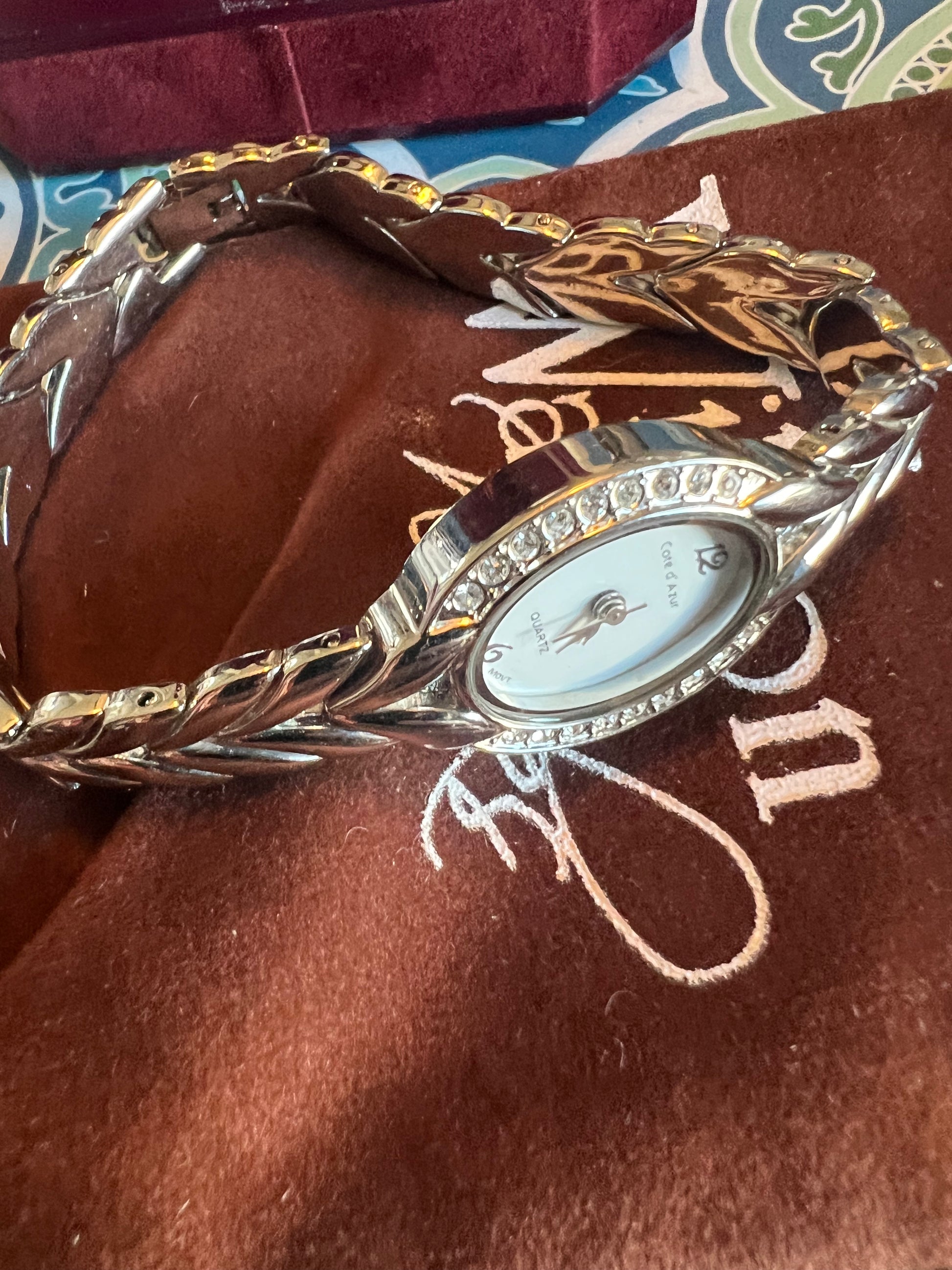 Dainty crystal accent silver tone ladies watch tiny, adorable. B8