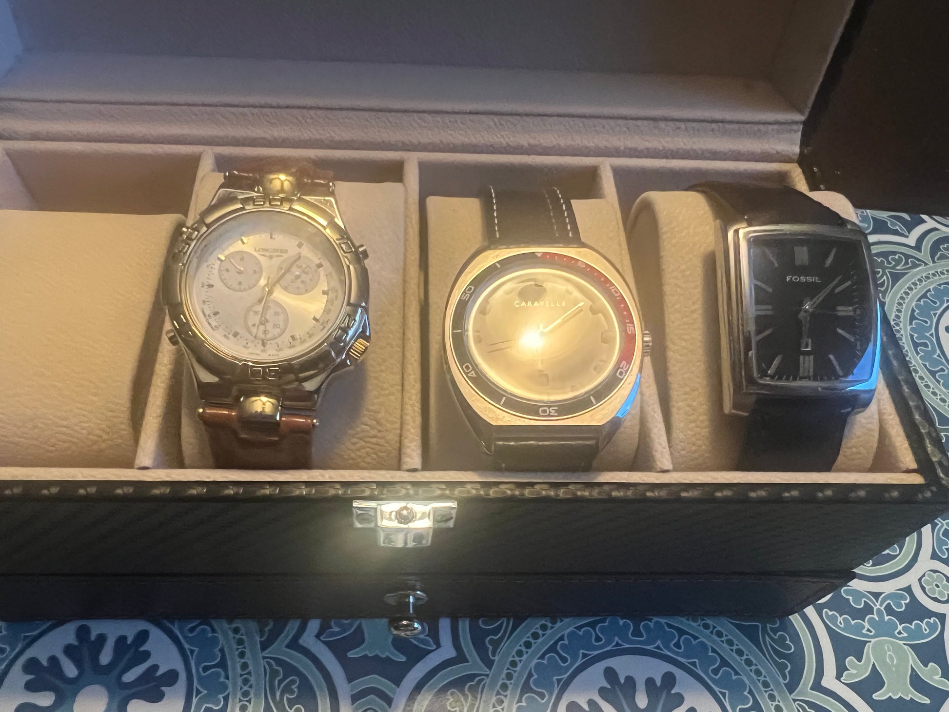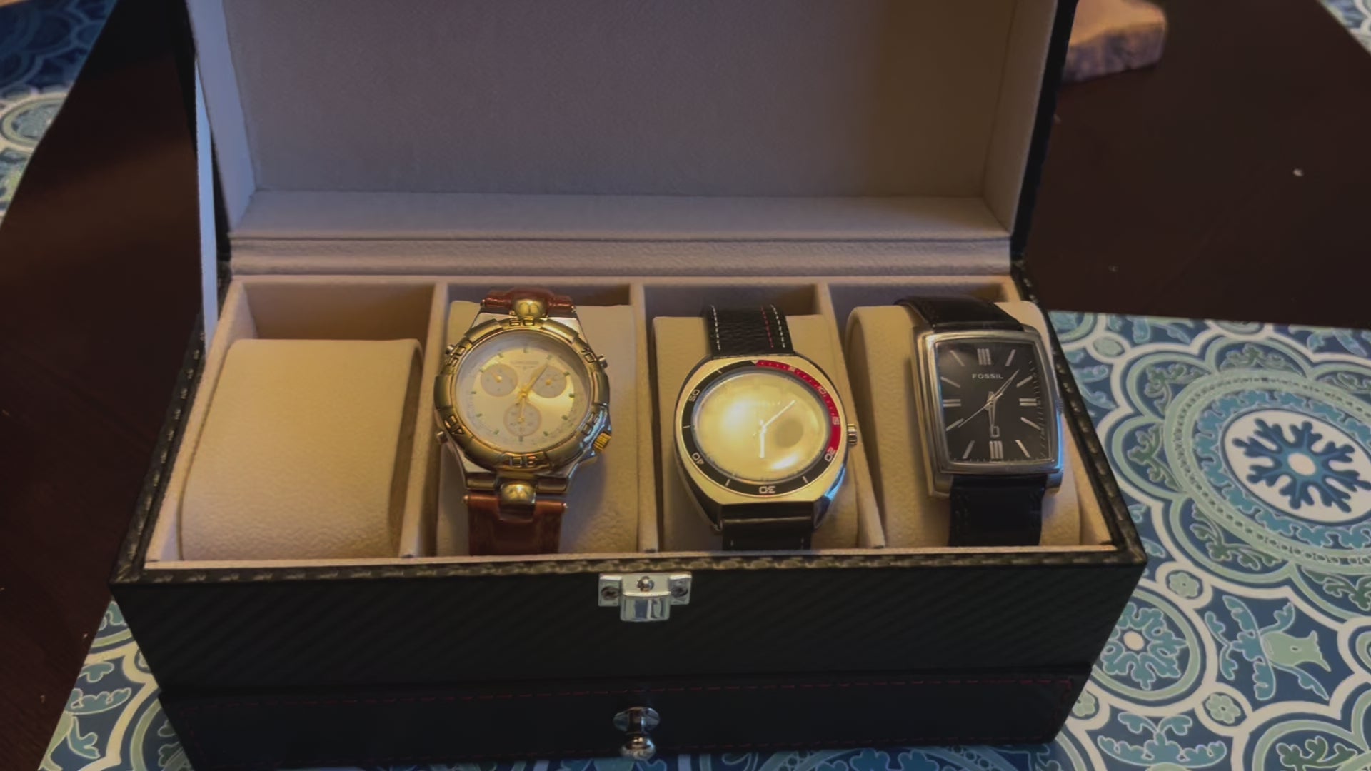 Lot of 3 men’s watches in a nice jewelry/watch case B8
